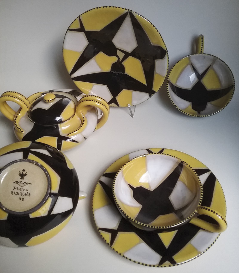 per la manifattura La Fenice di Albissola. Nome della manifattura, della località e 28 sotto la zuccheriera e lattiera’ per i restanti simbolo della manifattura