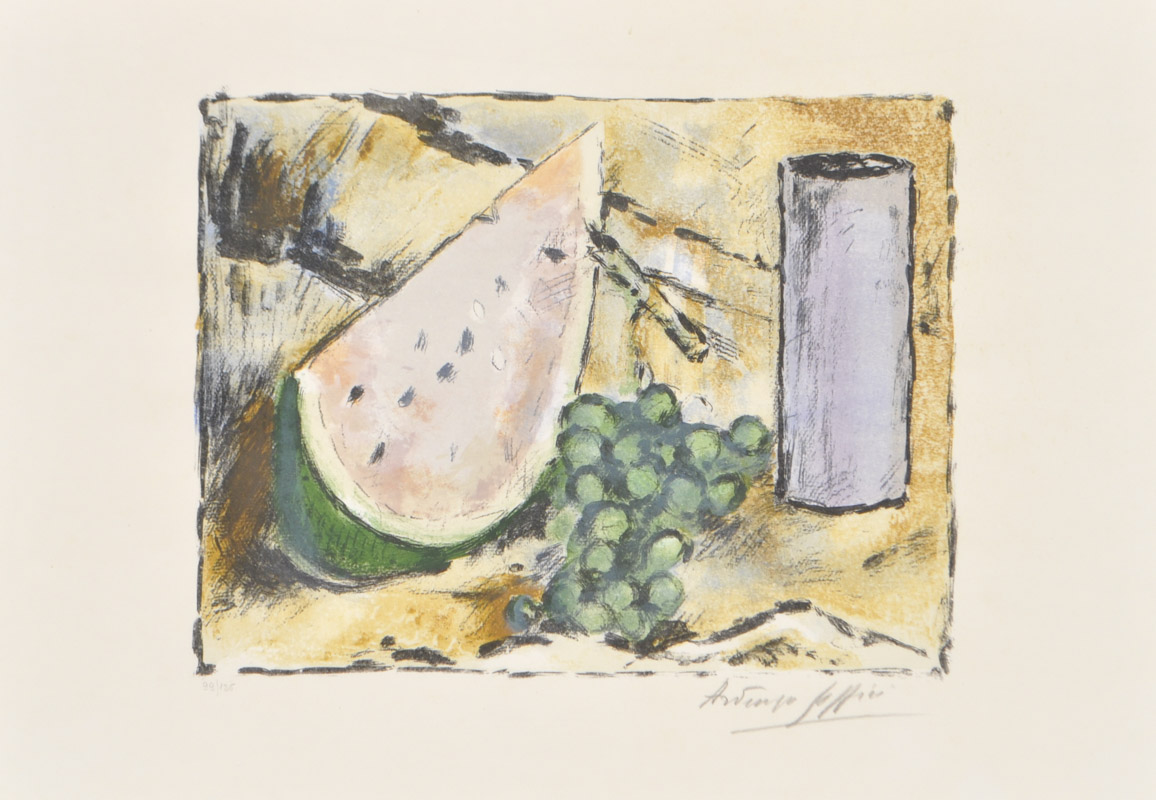Ardengo Soffici – Vaso viola cocomero e uva, 1963