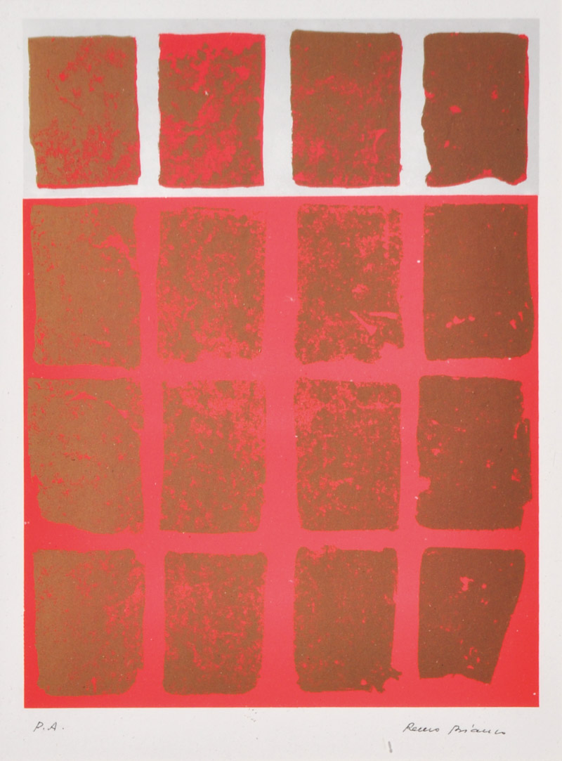 Lithografie auf Papier, 15,5 x 10 cm, auf der Rückseite gedruckter Text für die Einladung zur Eröffnung der Ausstellung ‘Drapeaux – Bandiere’ in der ‘Galerie Lara Vincy Paris’ 1987
