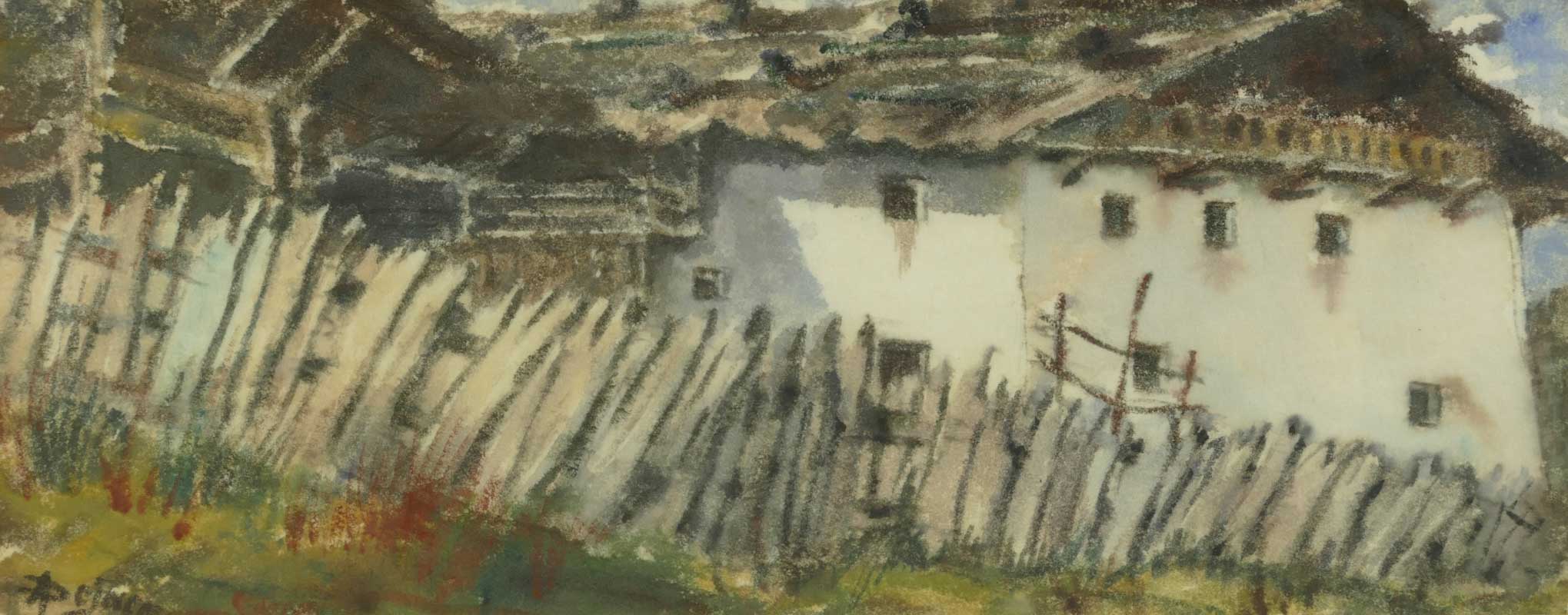 Tecnica mista su carta, 23 x 59 cm, in cornice, Firma