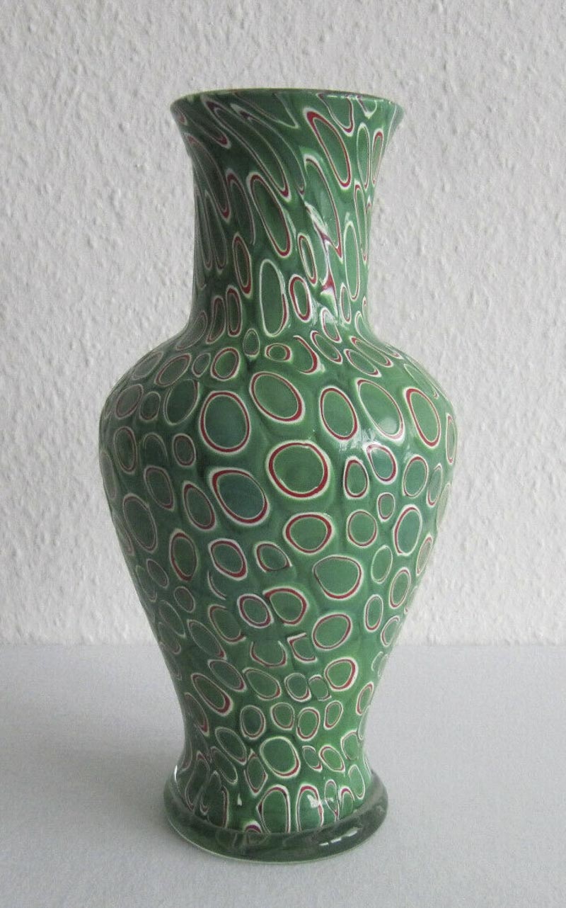 a murrine policrome, un anello di vetro trasparente circonda la base, .31,8 x 15 cm, produzione A.Ve.M.