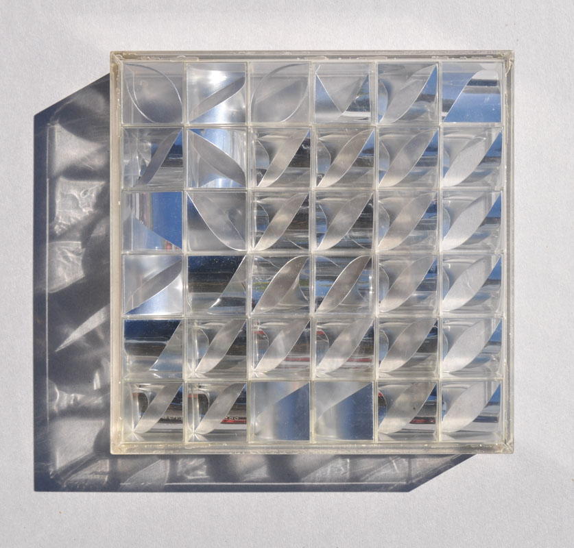 Box in Plexiglas con all’interno elementi in metallo,