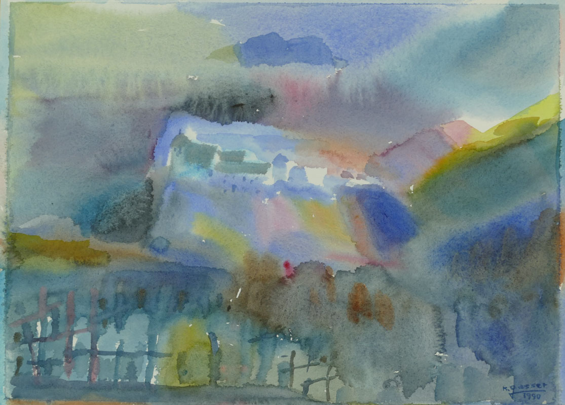 Acquarello su carta, 27 x 38 cm, in cornice, Firma e data