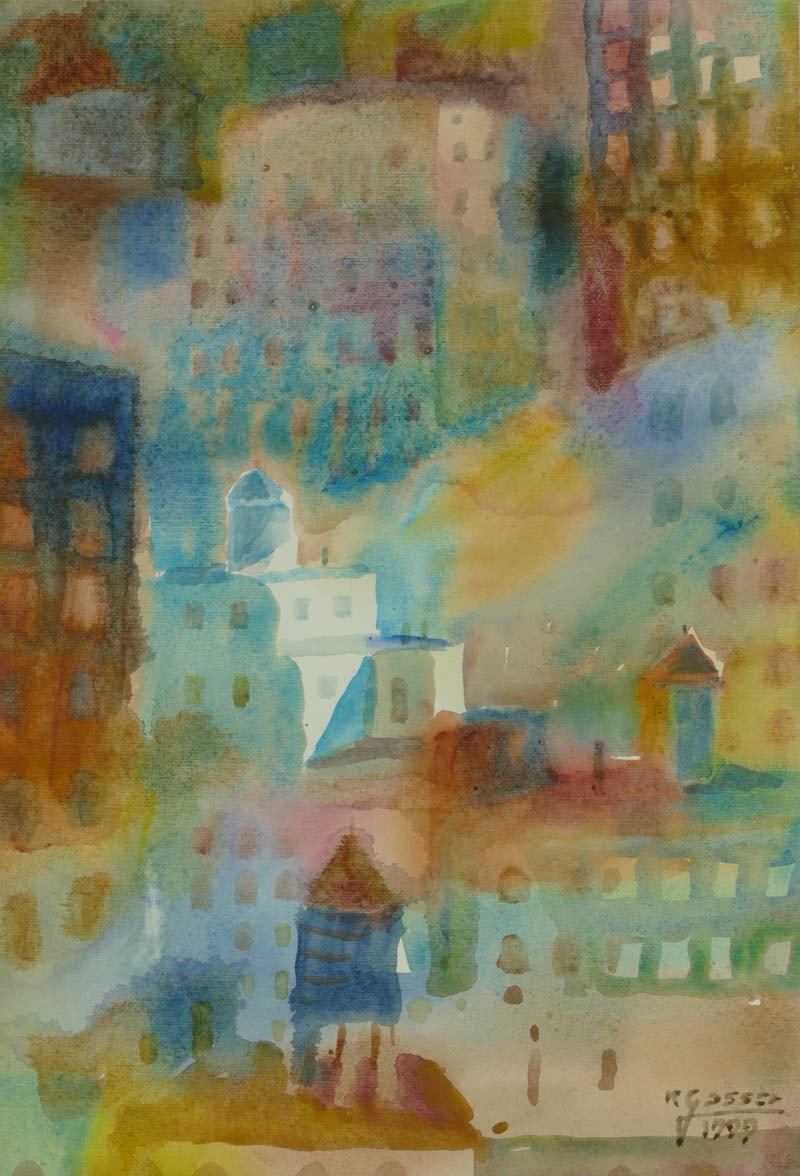 Acquarello su carta, 35 x 24 cm, in cornice. Firma e data.