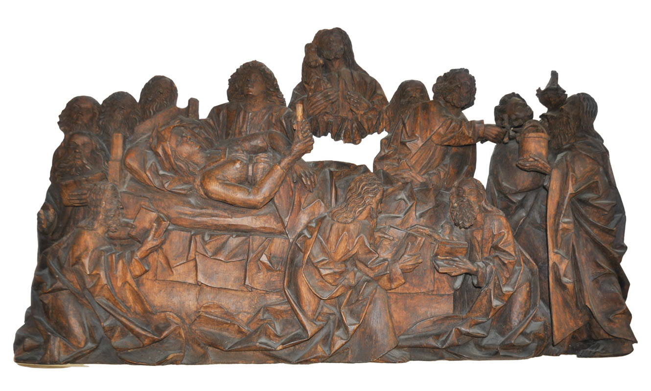 Rilievo in legno, ca. 66 x 115 cm, danni del tempo, mancanze