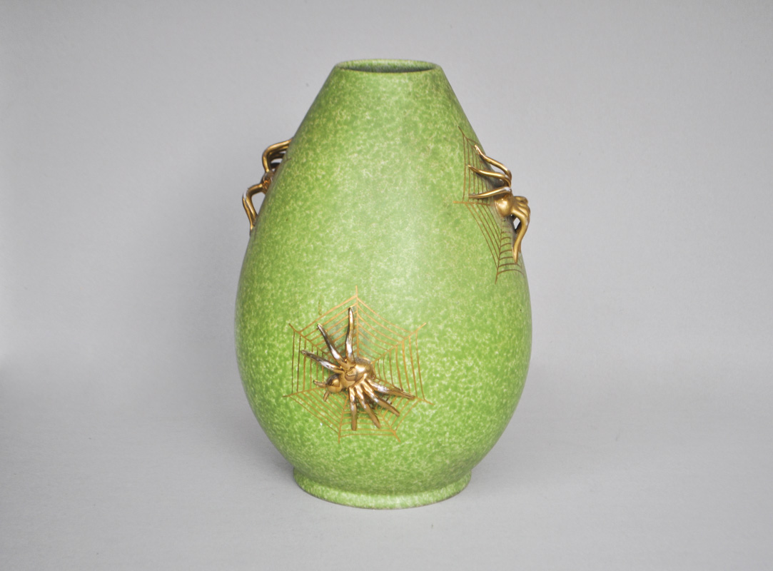 In ceramica smaltata verde con ragni a rilievo