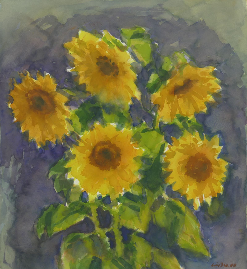 Acquarello su carta, 51 x 47 cm, in cornice. Firma e data.