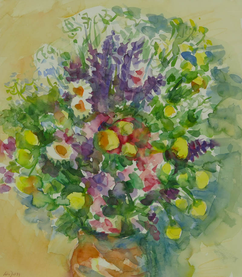 Acquarello su carta, 52 x 46 cm, in cornice. Firma e data.