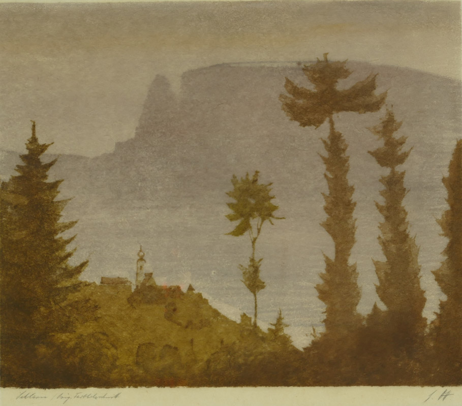 Farbholzschnitt auf Papier, 32 x 36 cm, gerahmt. Monogrammiert.