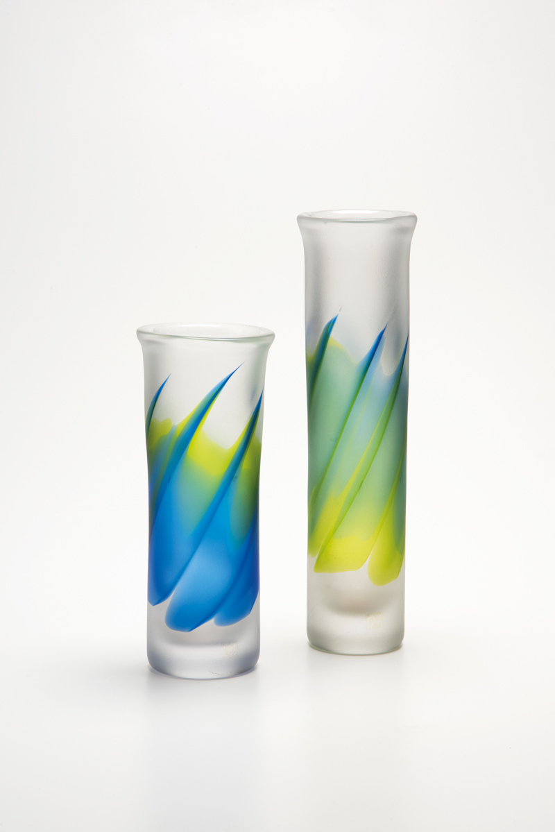 Vetro colorato, produzione Kosta Boda, h. 30 e 23 cm