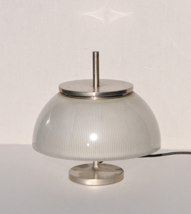 Ottone nichelato, vetro opalino,23 x 24 cm. Produzione Artemide