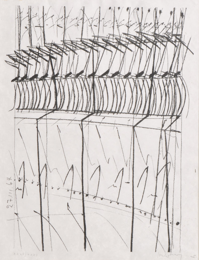 Litografia in b/n su carta, 66 x 50 cm, timbro a secco