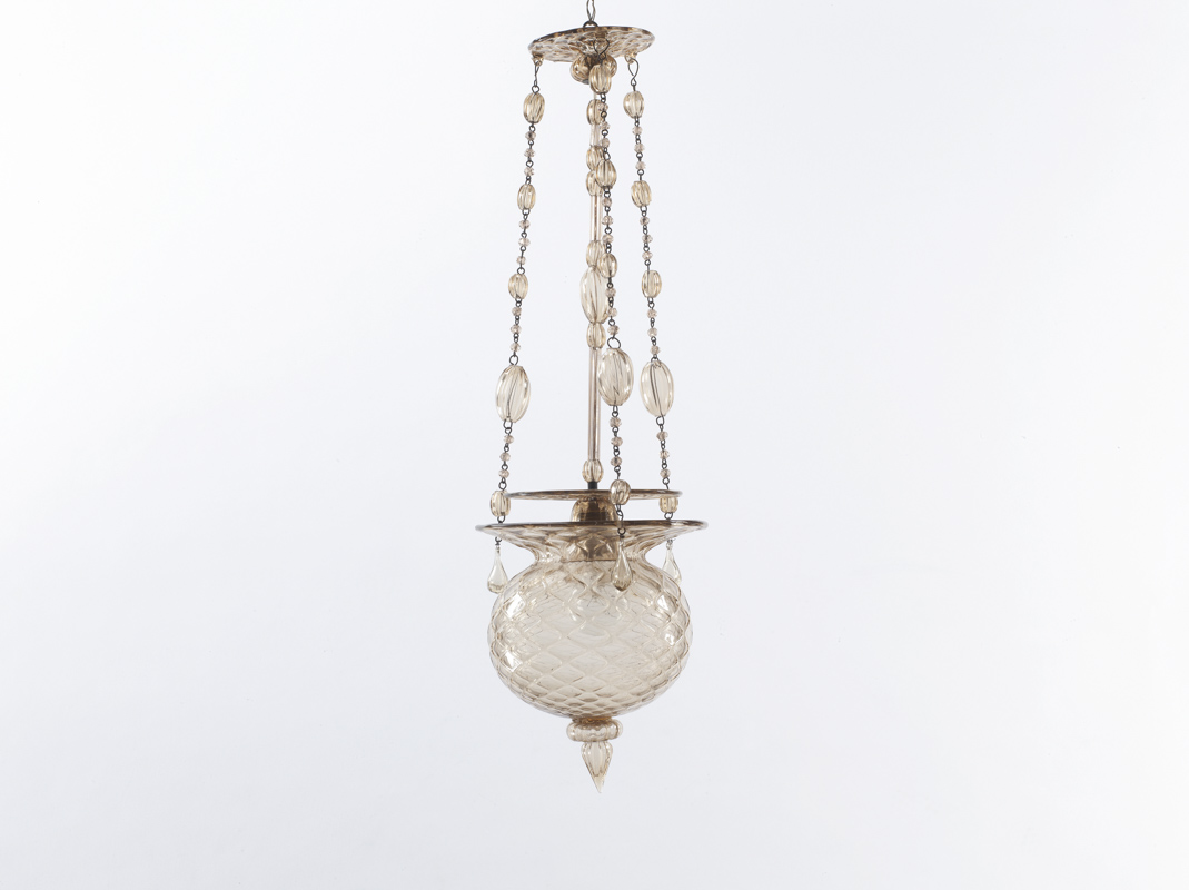 In vetro paglierino con elementi in vetro balloton, h. 77 cm, Manifattura
