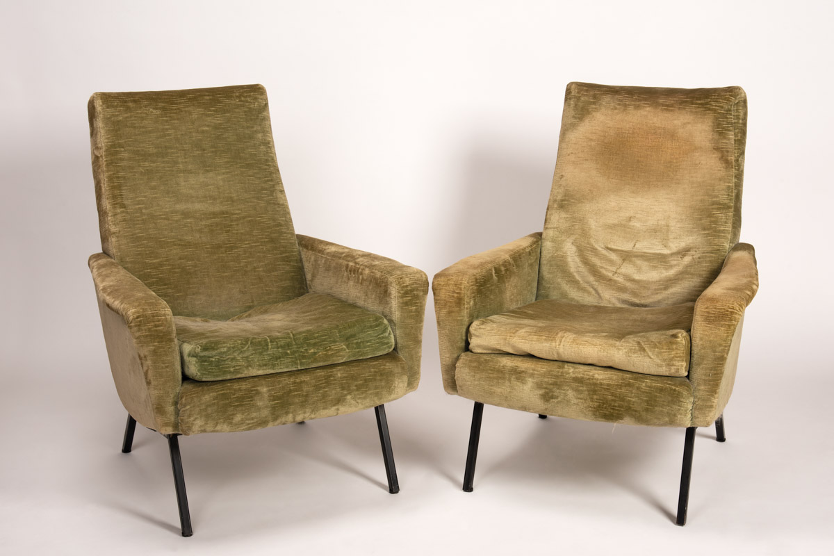 Struttura in ferro, rivestimento in velluto da rifare, h. 95 x 75 x 73 cm