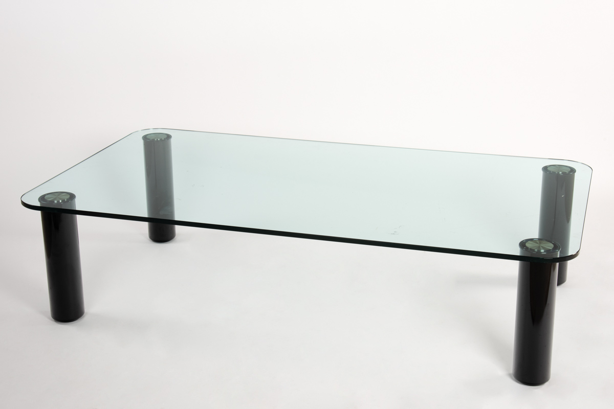 Piano in cristallo, gambe in acciaio inox verniciato