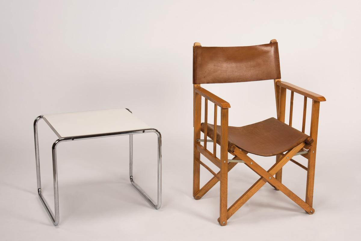 Struttura in acciaio cromato, piano in formica, h. 46 x 48 x 56 cm,