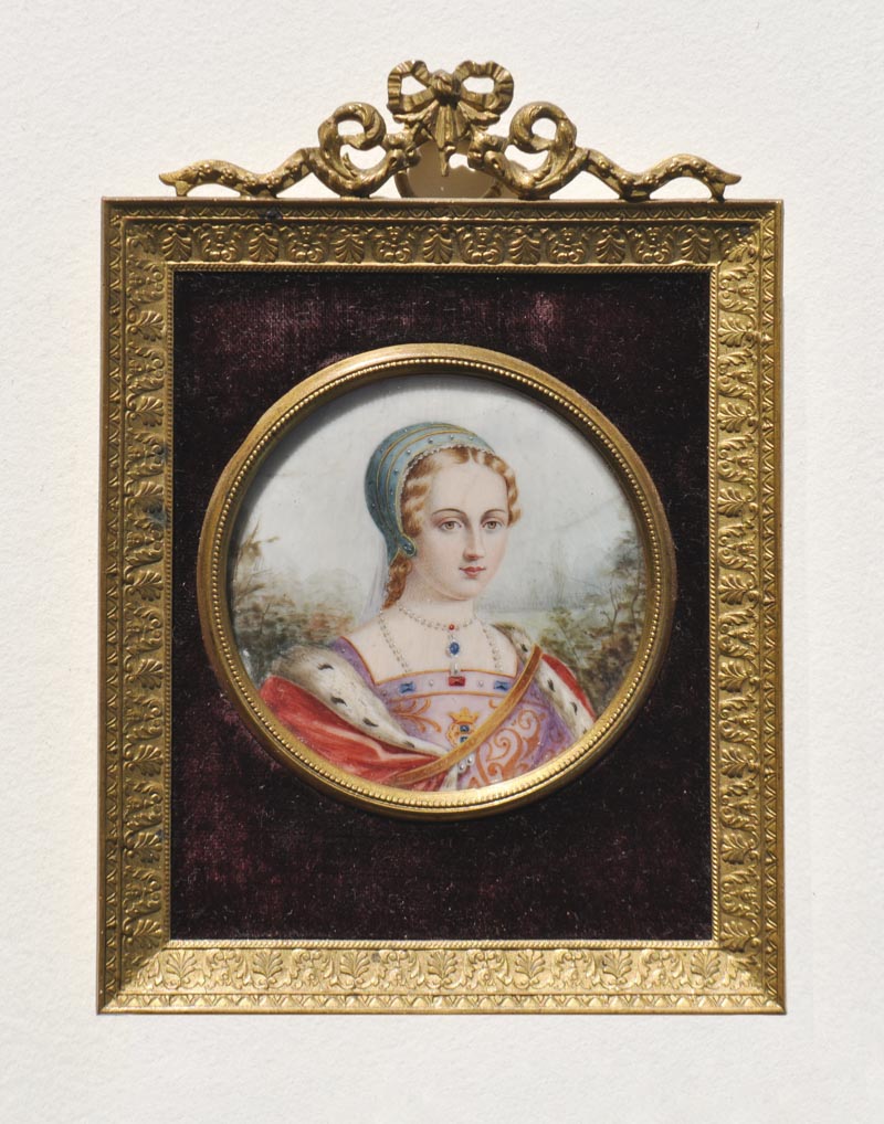 Guazzo su avorio, diam. 5 cm, cornice d’epoca