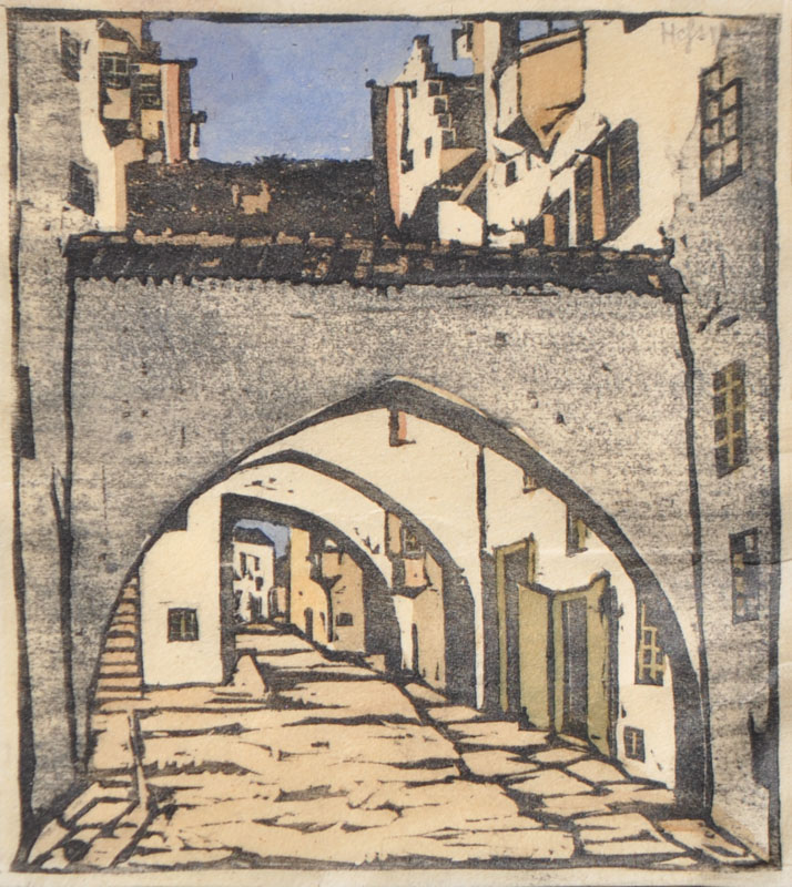 Xilografia acquerellata, 12 x 11 cm (immagine), in cornice