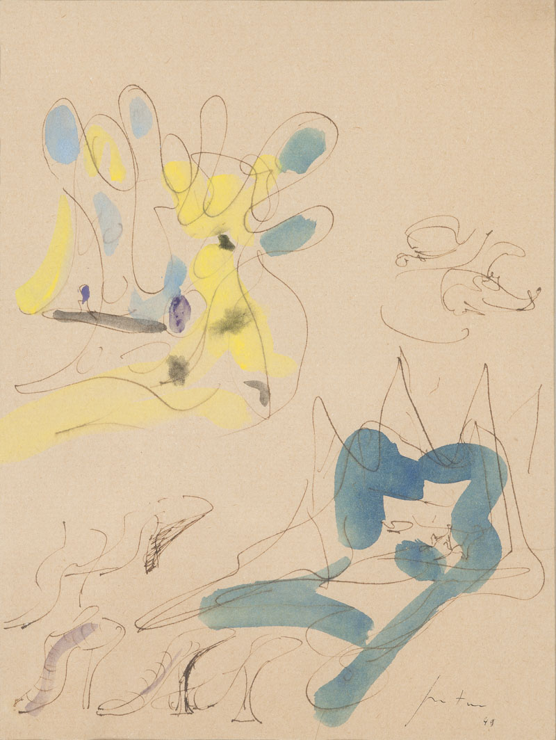 Inchiostro e acquarello blu e giallo su carta, 28 x 21 cm,