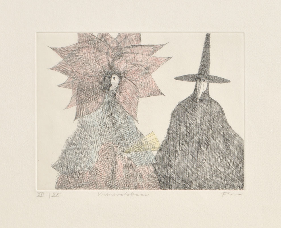 Acquaforte colorata a mano, 17,7 x 23,3 cm (lastra),