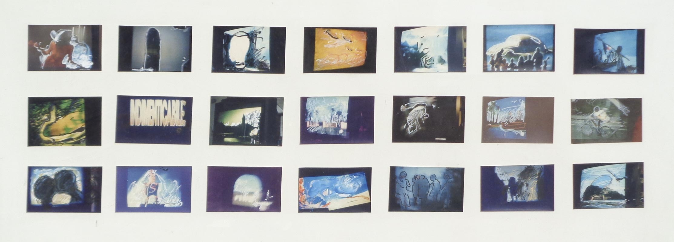 Tecnica mista su fotografie, 21 fotografie cadauna 10 x 15 cm. applicate su tela 70 x 50 cm, al centro scritta dell’autore sul telaio “ collezione Enrico Loci e Cristiana”