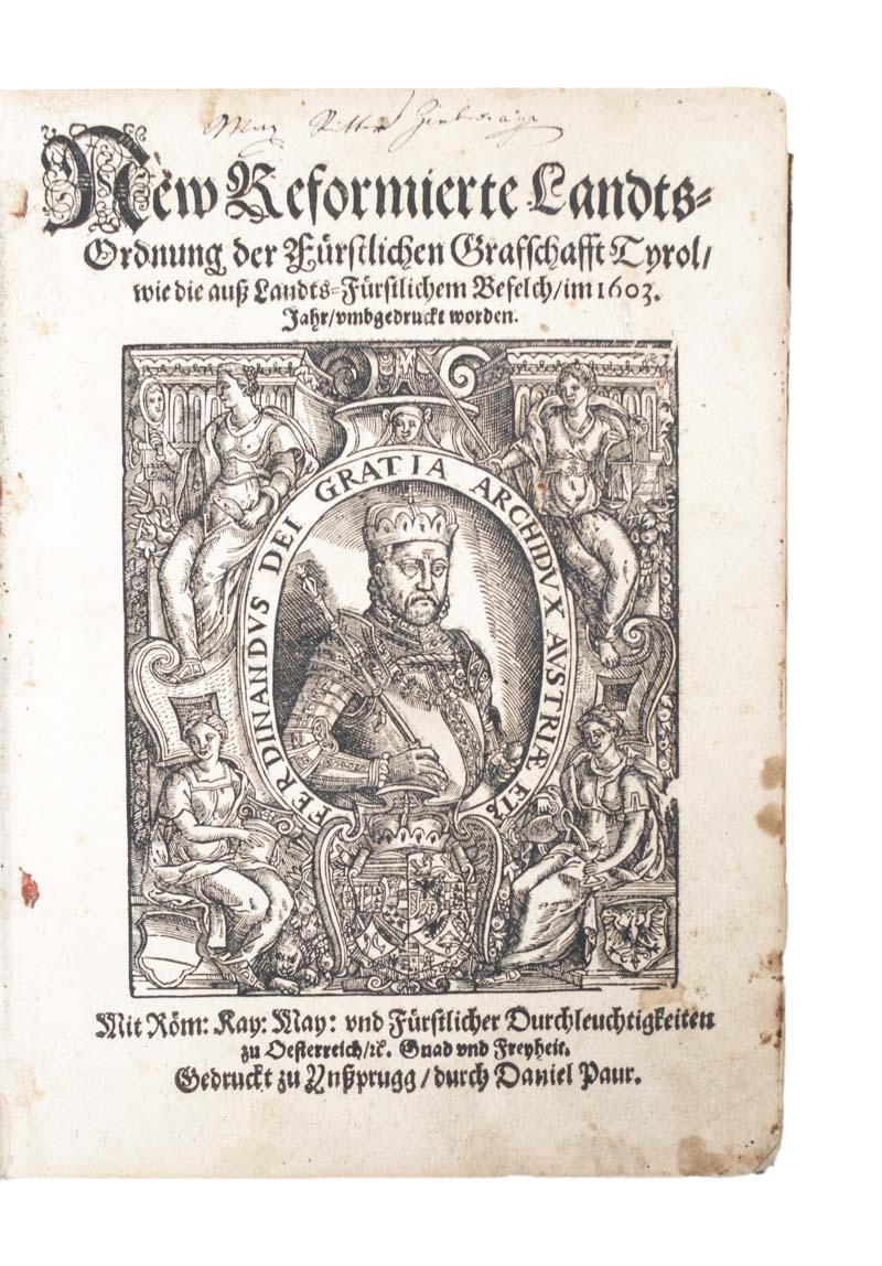 der Fürstlichen Graffschafft Tyrol, wie die auß LandtsFürstlichem Bevelch, im 1603. Jar, umgetruckt worden, Daniel Paur, Innsbruck, 1603