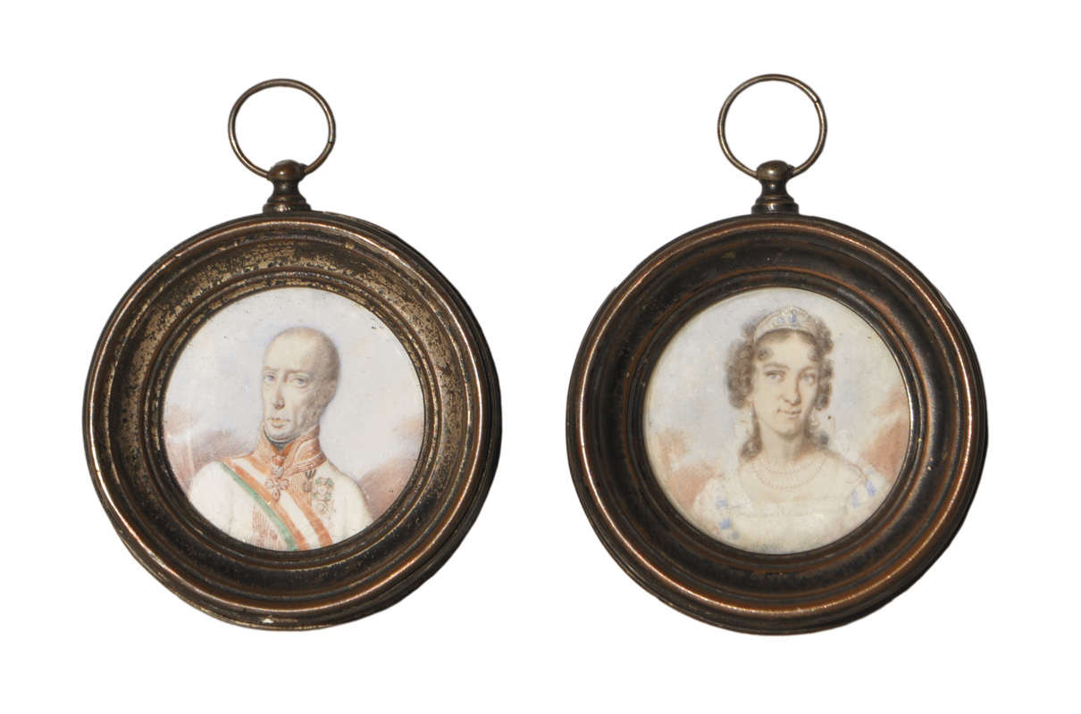 1830 ca.2 acquerelli, dm 5 cm ciascuno, cornice di metallo