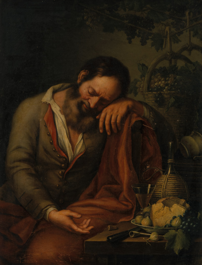 Süditalienische Schule/Scuola Italia settentrionale Ende 18. Jh. – Uomo che riposa accanto ad un tavolo (Allegoria d’autunno?)