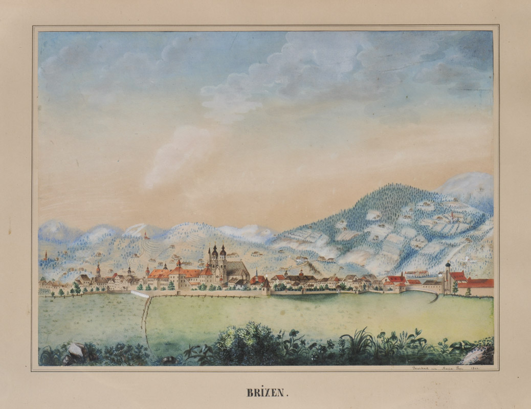 Disegno acquerellato, 33 x 45 cm, in cornice Biedermeier