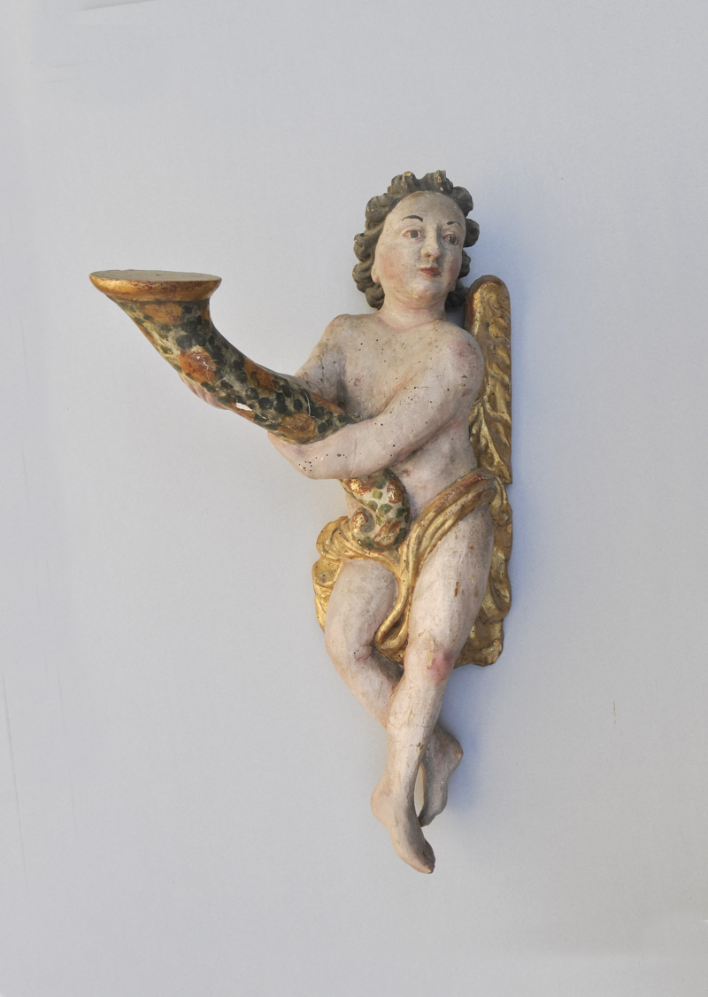 Legno dipinto, altezza 66 cm ciascuno, restauri, danni dovuti