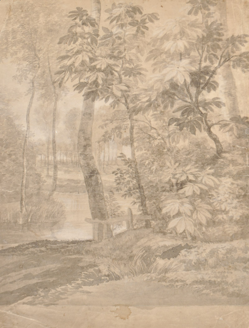 Acquerello, 43 x 33,5 cm, strappi laterali, tracce di colla, macchie