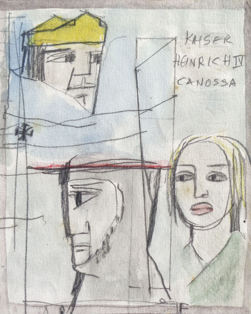 Matita e pastelli col. su carta, 14,5 x 11,5 cm