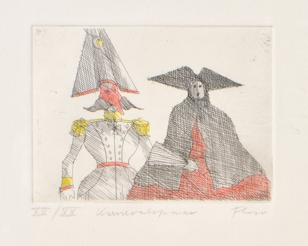Acquaforte colorata a mano, 8 x 10,5 cm (lastra),
