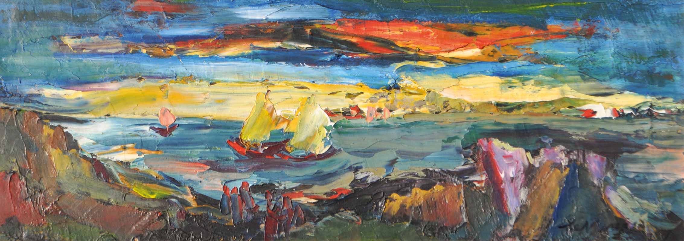 Olio su lastra, 20,5 x 58 cm, in cornice