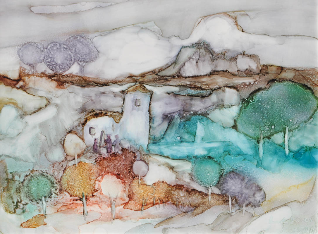 Franz Lettner – Paesaggio collinare con cappella, 1977