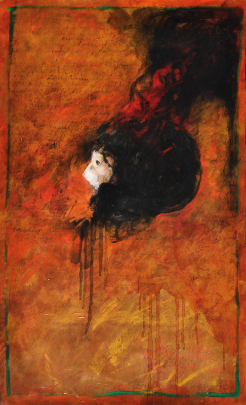 Tecnica mista su carta, 76,5 x 46,5 cm, in cornice