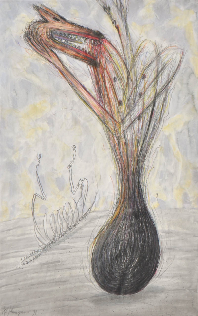 Tecnica mista su carta, 93 x 59,5 cm, in cornice