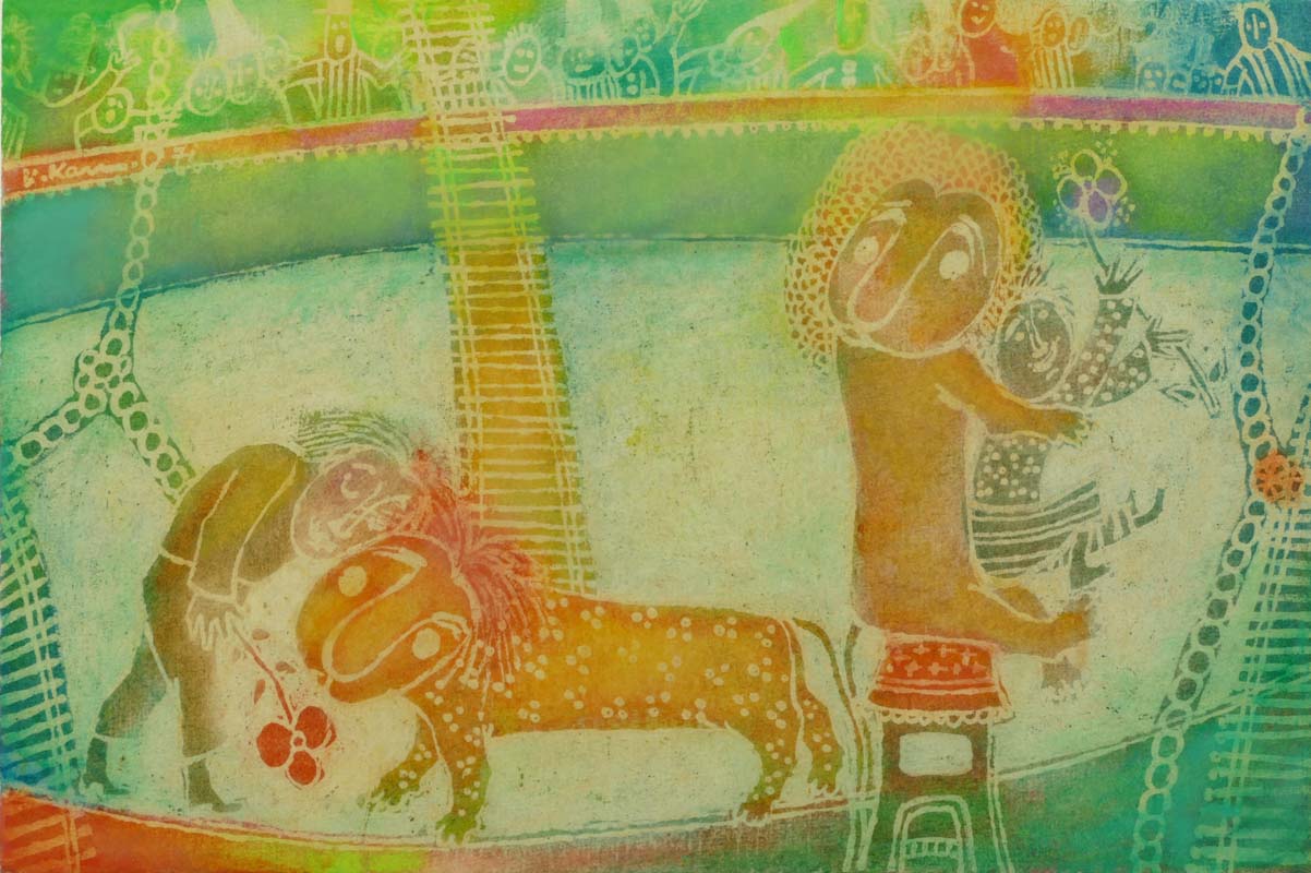 Colori a cera e olio su tavola, 20 x 30 cm, in cornice.