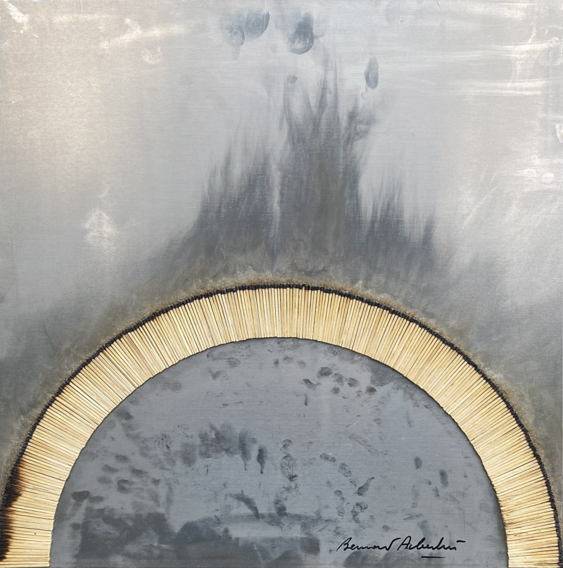 Fiammiferi bruciati su lamiera, 60 x 60