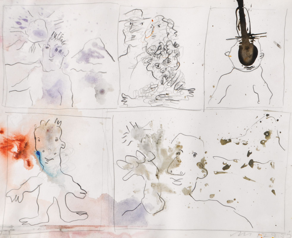 Matita, acquerello, 29,5 x 36,5 cm, in cornice