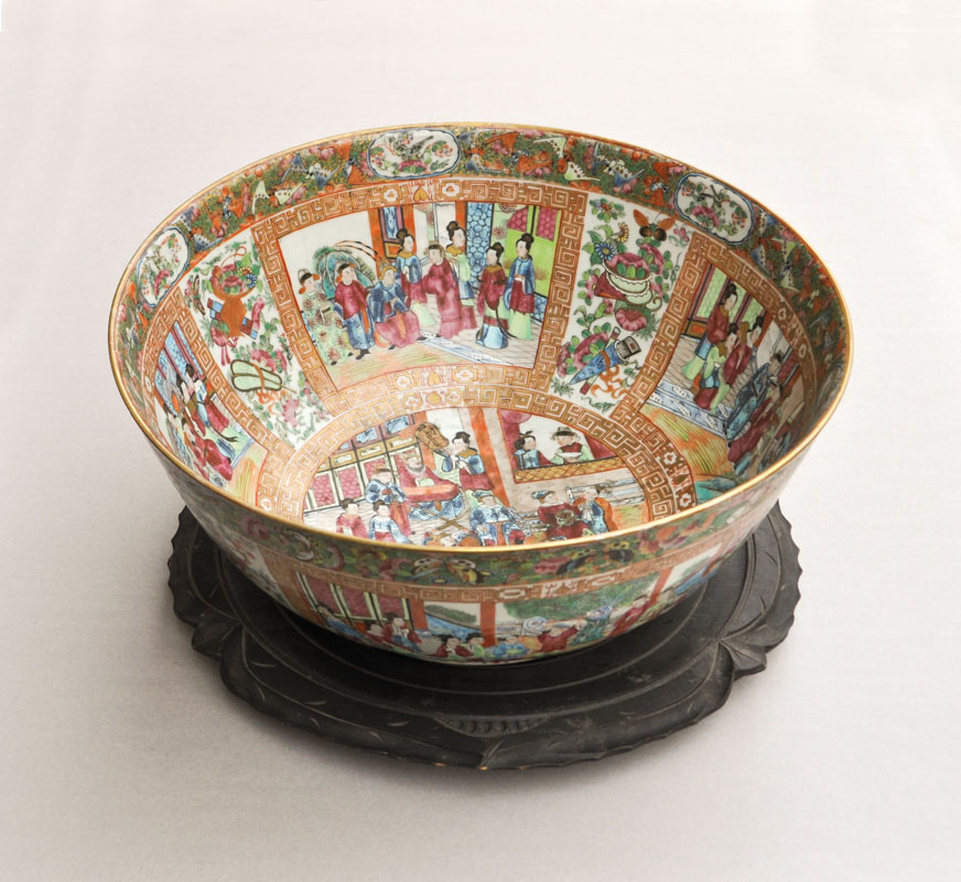 Porcellana, diametro 41 cm, sottovaso in legno