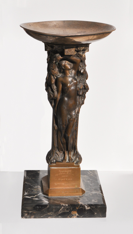 Bronzo, ciotola placcata in argento, H. con base 41 cm