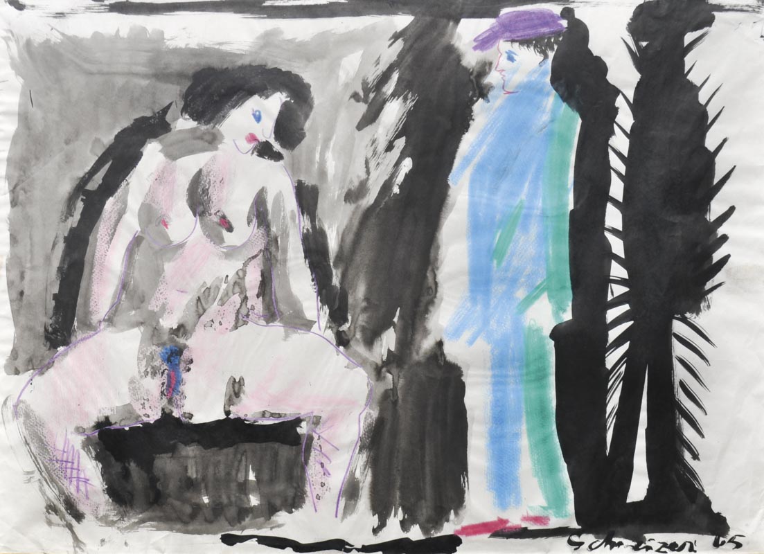 Tecnica mista su carta, 49 x 67 cm, in cornice