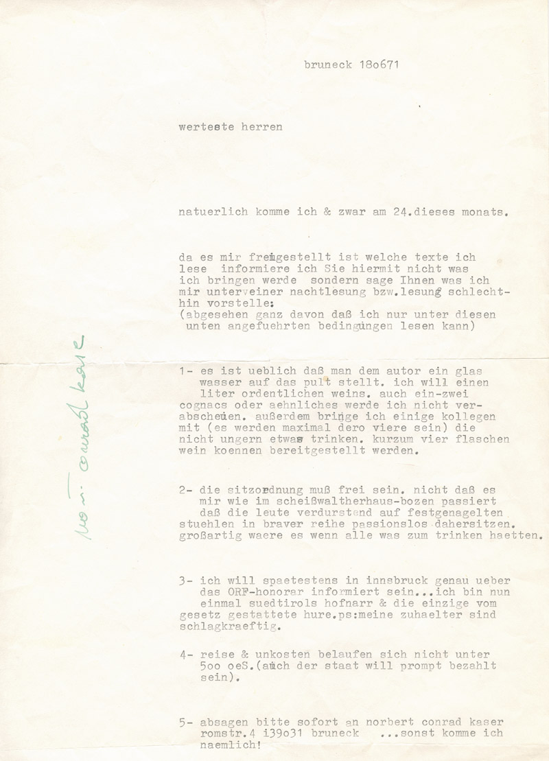 Dattiloscritto, indicazione autografa, 31 x 21 cm, piegata