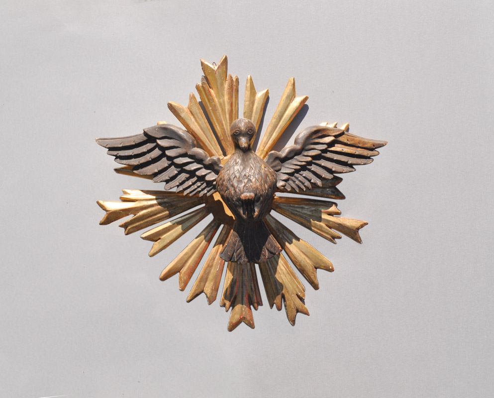 Legno, scolpito a tutto tondo e dipinto, raggiera