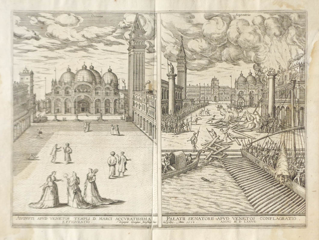 D. Marci accuratissima effiguratio. Depinxit Georgius Houfnaglius Anno 1578. Palatii Senatorii apud Venetos conflagratio