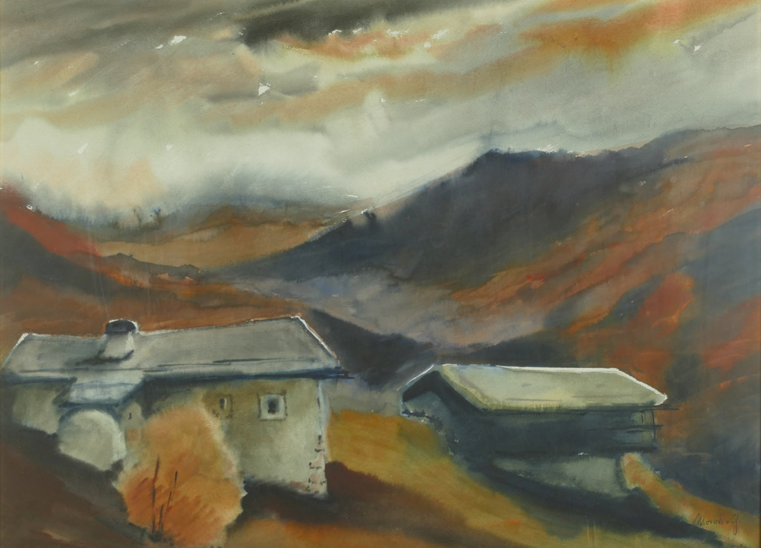 Acquarello su carta, 53 x 73 cm, in cornice. Firma