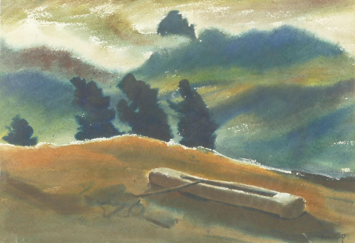 Gottfried Moroder – Paesaggio montano con abbeveratoio