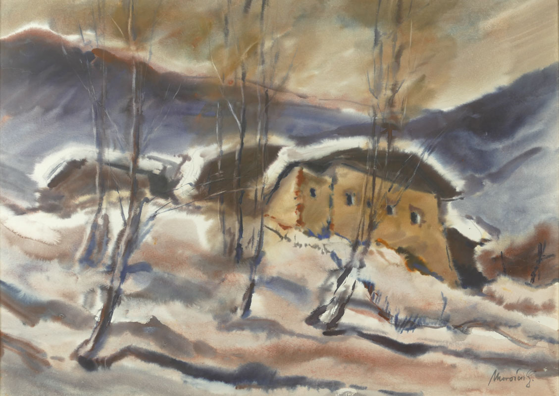 Acquarello su carta, 51,5 x 72,5 cm, in cornice. Firma