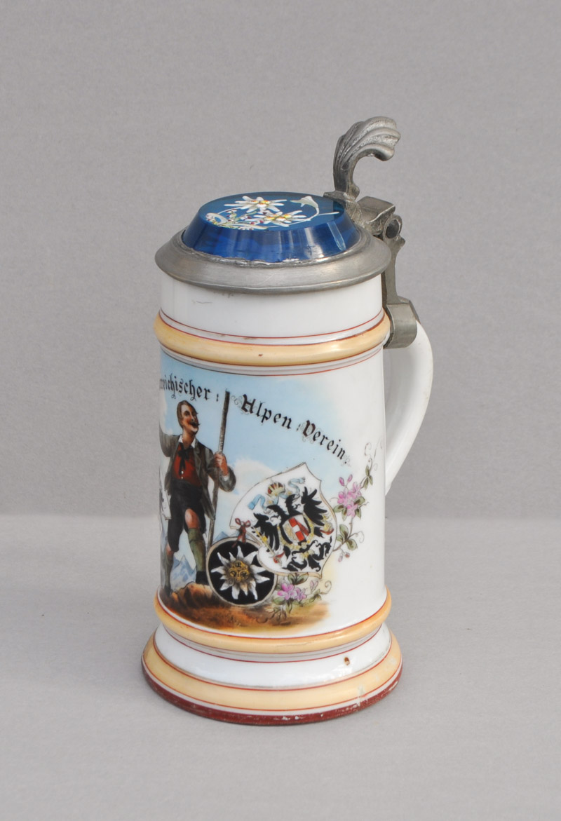 Porcellana, coperchio in stagno e vetro, altezza 21,5 cm